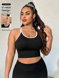 Rhythm Era Plus Size Women Solid Color Mesh Patchwork Sports Bra, Suitable For Daily Fitness