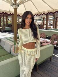 MORIMori 2026 Spring/Summer New Women's Striped Knit Set, Fitted Sleeveless Design, Cropped Style, Suitable For Dates, Casual Wear, Showcasing Fresh And Relaxed Vibe. Spring/Summer Women's Clothing, Casual Wear, Youth Style, Everyday Light Outfit, Girlfriend Gathering, Beach Holiday Knit Two Pieces Set #9 Bestseller