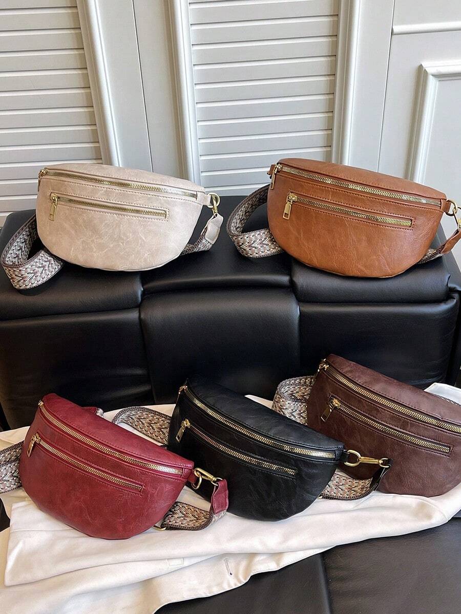 Women's Velvet Fanny Pack Chest Bag With Zipper, Wide Strap, Large Capacity Saddle Bag, Versatile Crossbody Bag