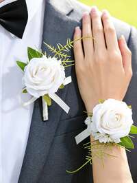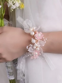 4pcs Elegant White Rose Wrist Corsage, Paired With White Baby's Breath And Faux Pearl Strings, Beautifully Accented With Green Leaves, Durable And Comfortable To Wear, Perfect Wedding Accessory For Brides, Bridesmaids, Mothers Of The Bride, And Guests, Also Suitable For Galas, Anniversaries, Formal Dinners, Engagements, Or Romantic Parties, An Elegant Gift Idea For Women