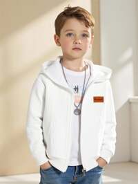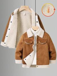 SHEIN Boys' Thick Fleece Jacket, Khaki, Hooded Zip-Up Sweatshirt, Casual Top For Spring, Summer, Fall, Winter, Back To School, Garden, Beach, Birthday #6 Bestseller