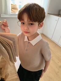 Boys' Solid Color Short Sleeve Sweater, Collared Lightweight Knit Pullover, Suitable For Spring, Summer, Autumn