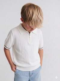 DAZY Young Boy Striped Short Sleeve Polo Neck Knit Top