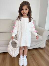 Playful PalsSHEIN Playful Pals Young Girls Floral Jacquard Knit Sweater Dress, Crew Neck Regular Fit Cartoon Flower Pattern Knitwear Dress, Soft & Comfortable, Suitable For Spring, Autumn, Winter, Daily Wear, Outings, Travel, Vacation, Home, Daycare, Kids Play Brown Dress Kids Girl S Spring And Autumn Dress Long Sleeve Dress For Girls Kids Polka Dot Dress Autumn And Winter Young Girls Dressse #2 Bestseller