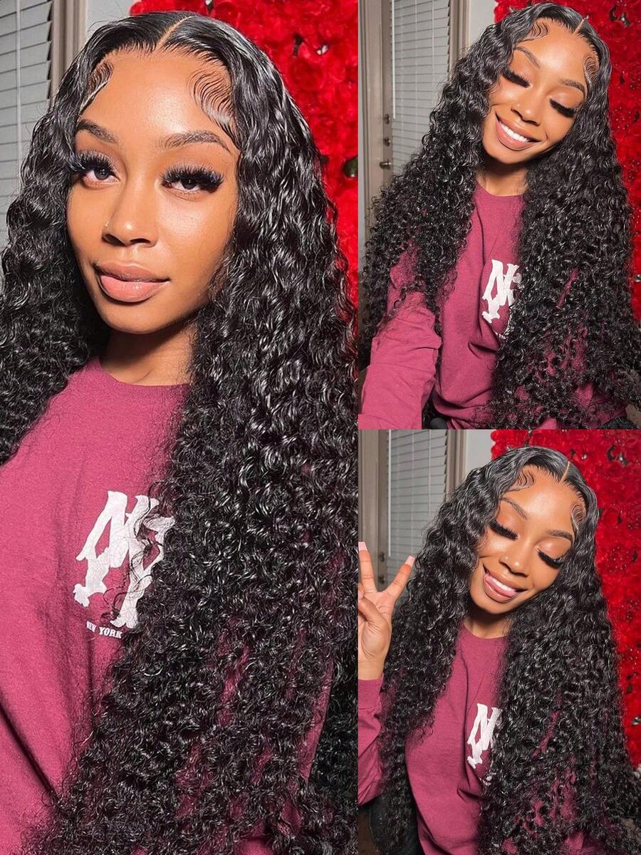 funky girl Water Wave 13x4 Lace Front Wigs Human Hair 150% Density Curly Wig Human Hair Lace Frontal Wigs For Black Women Deep Wave Pre Plucked Natural Black