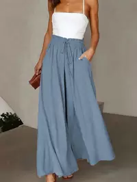 Almamuse Women's Solid-Color High Waist Tie-Waist Pocked Loose Wide Leg Casual Pants Fall Cloth For Women