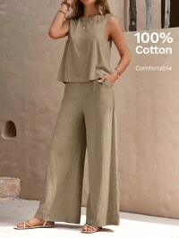 EMERY ROSE Solid Tank Top & Wide Leg Pants