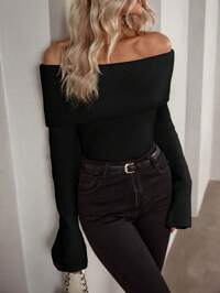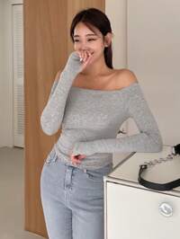 DAZY Solid Off Shoulder Tee Long Sleeve Women Tops