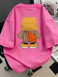 Bear Print Round Neck T-Shirt, Plus Size Women's Street Fashion Item For Summer, Suitable For New Year, Festivals, Daily Wear, Outings, Beach, Parties, School, Music Festivals, Vacations, Commuting And Other Occasions