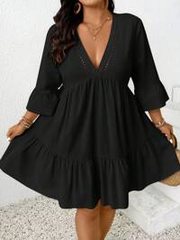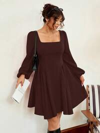 EMERY ROSE CURVEEMERY ROSE Plus Size Women's Burgundy Dress, Autumn,Vacation Outfits Women ,Holiday Outfits For Women,Spring Outfit Women,Valentine's Day ,Valentine Outfits For Women ,Going Out Outfits,2026 New Clothes,Simple And Fashionable For Everyday Wear,Early Spring